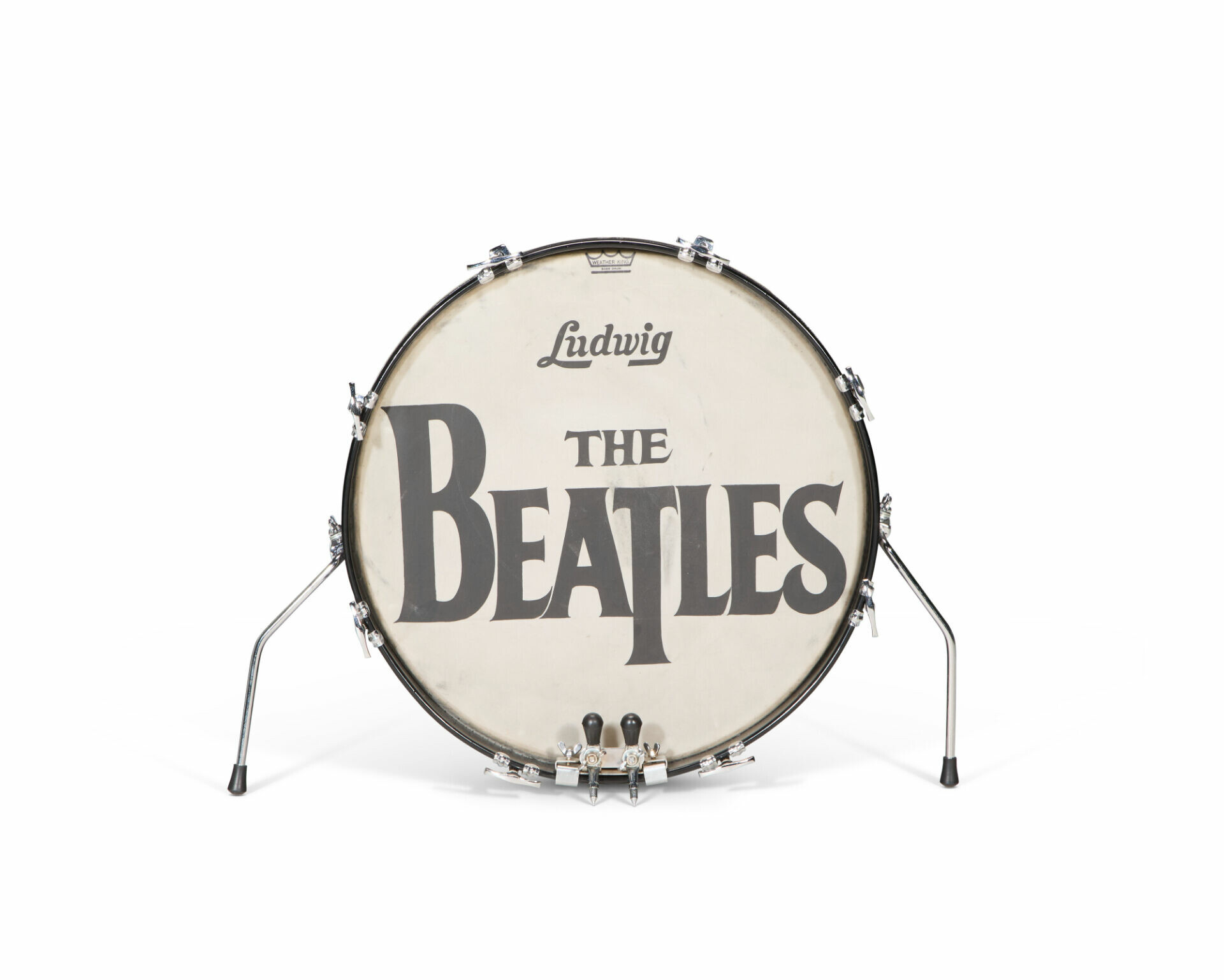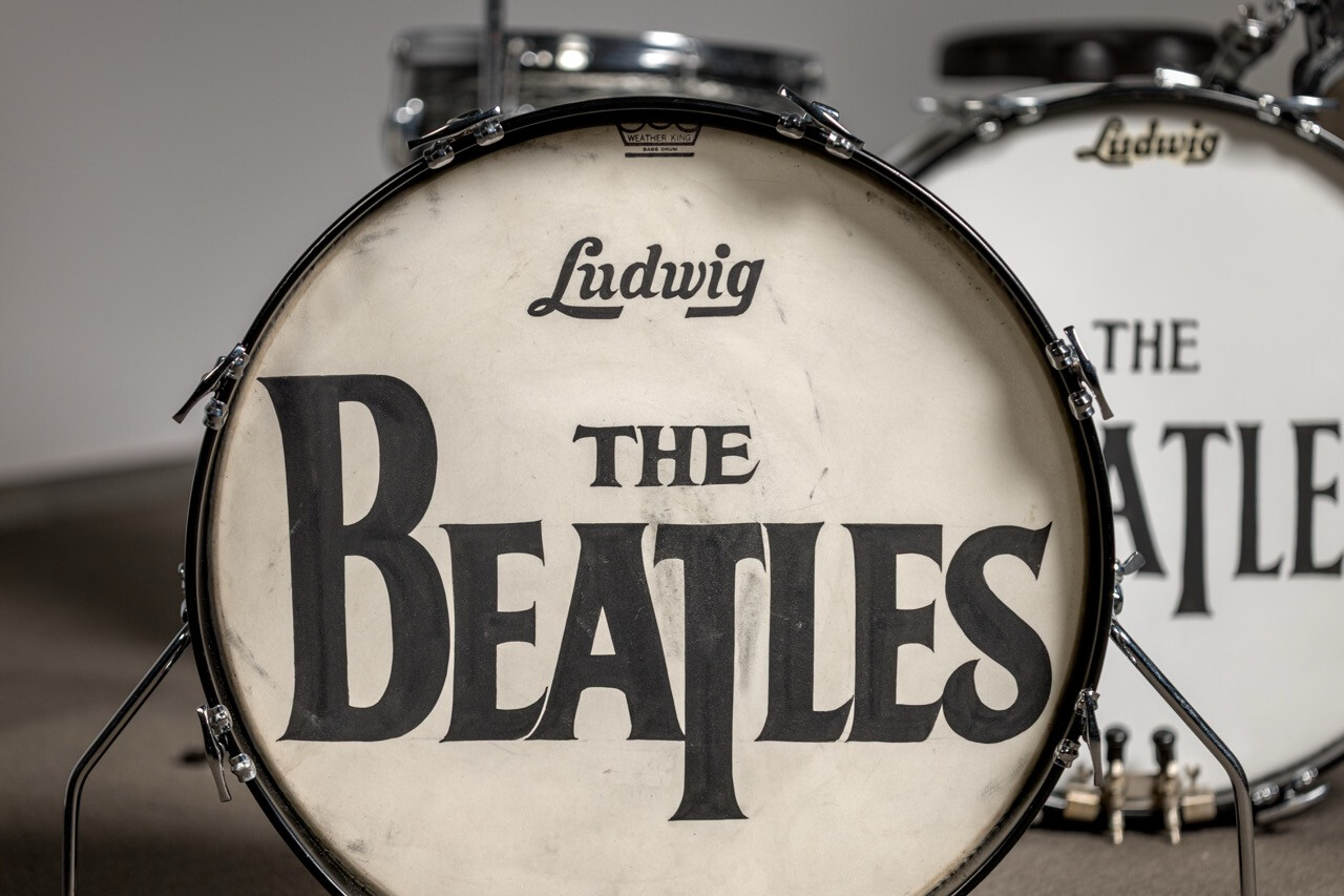 披頭四 1964 年在艾德·沙利文秀(The Ed Sullivan Show)上歷史性首次亮相時使用的帶有樂隊標誌的鼓面,估價:100萬至200萬美元