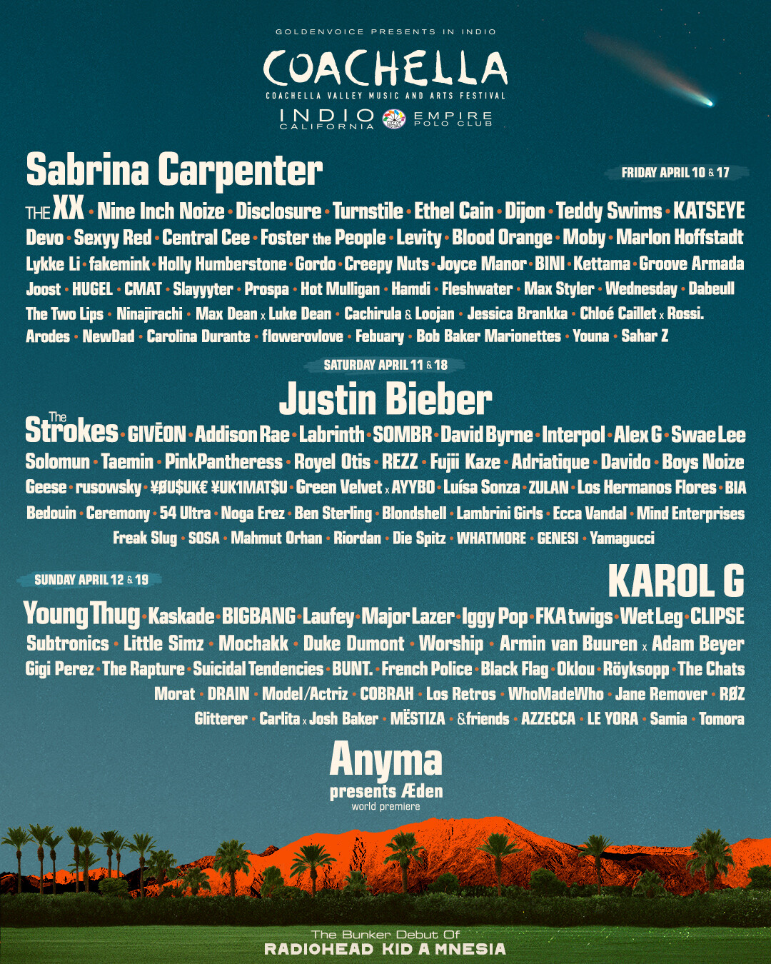 今年 Coachella 2026 主舞台(Main Stage)久違了小賈斯丁登台回歸