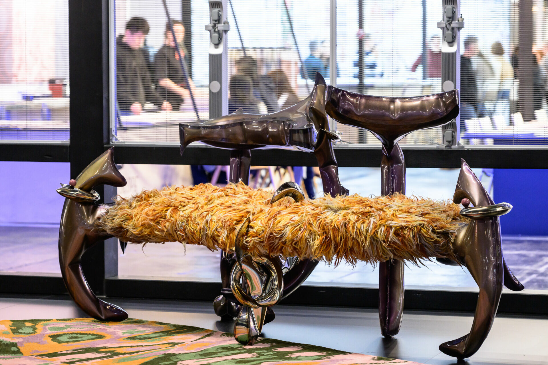 Heimtextil 2026 展會現場來自希臘雅典的設計與雕塑工作室 ASTRONAUTS Studio 的「雙子星 Gemini」雙人長椅,使用他們招牌外殼水力塑形技術(shell hydro-bulging )製作而成,在結構與流暢性之間創造動態美學。攝影/Messe Frankfurt - Pietro Sutera