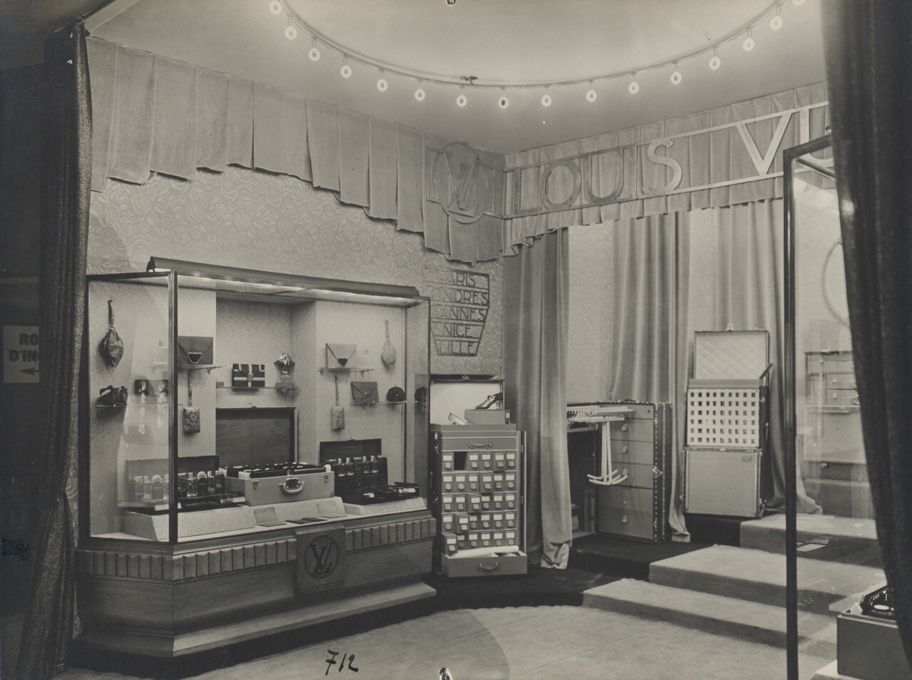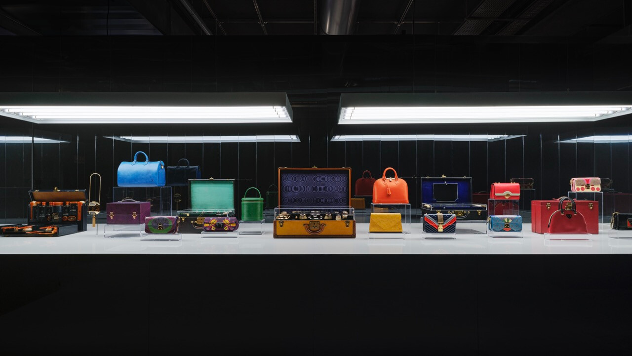 然而《路易威登的優雅與美麗》展廳則揭示日常生活如何昇華為藝術。為法國歌劇女伶瑪爾特·謝納爾打造的梳妝箱、鑲飾象牙的Milano系列,皆是工藝與想像的結晶。那是一種從容的優雅,與 Jeanne Lanvin、Paul Poiret 等時尚先驅相互呼應,構築屬於20年代的浪漫景致。巴黎大道上的旗艦店櫥窗,是加斯頓的實驗舞台。《櫥窗藝術》展廳重現他對燈光、空間與戲劇效果的掌握,使展示成為一場視覺盛宴。Champs-Élysées包款在柔軟皮革與帆布間閃爍光彩,如同 Art Deco 建築的光影雕塑,將品牌精神投射於城市街景。