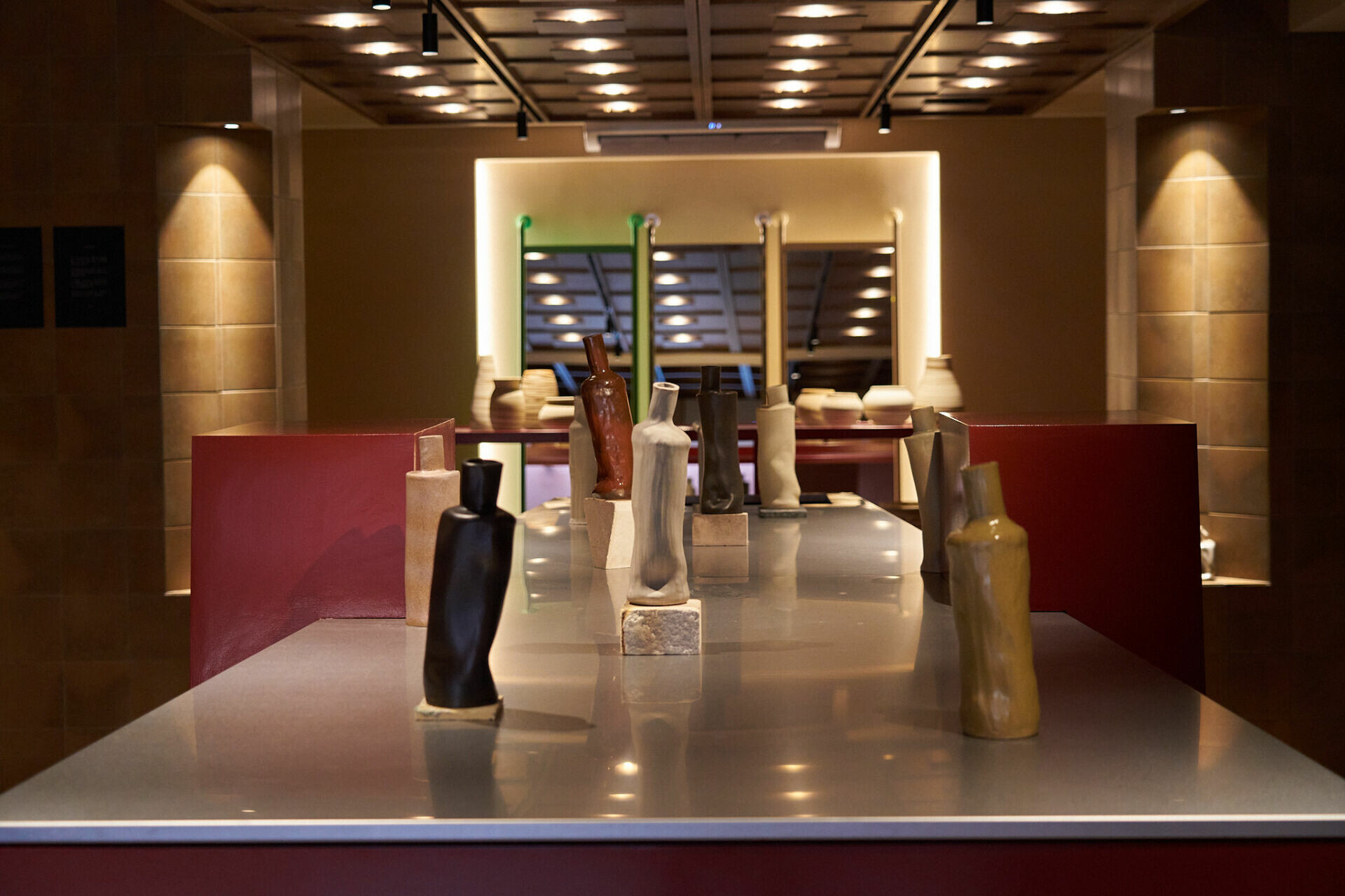 《Bodies》身體系列作品與場域中架上的香氛容器形成了對比及呼應,呈現不同於制式玻璃瓶的工業樣態。