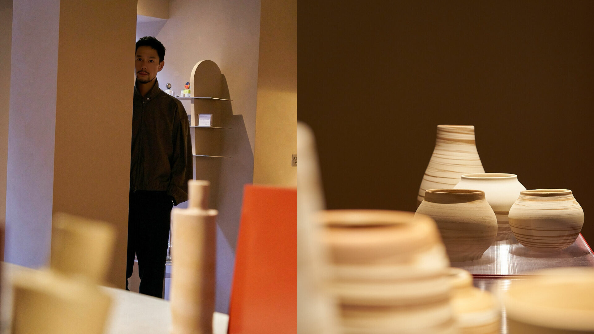 丁春誠以絞胎混土技法處理「身體由什麼構成」的作品系列呈現出如莫蘭迪器皿畫作中的構圖美學