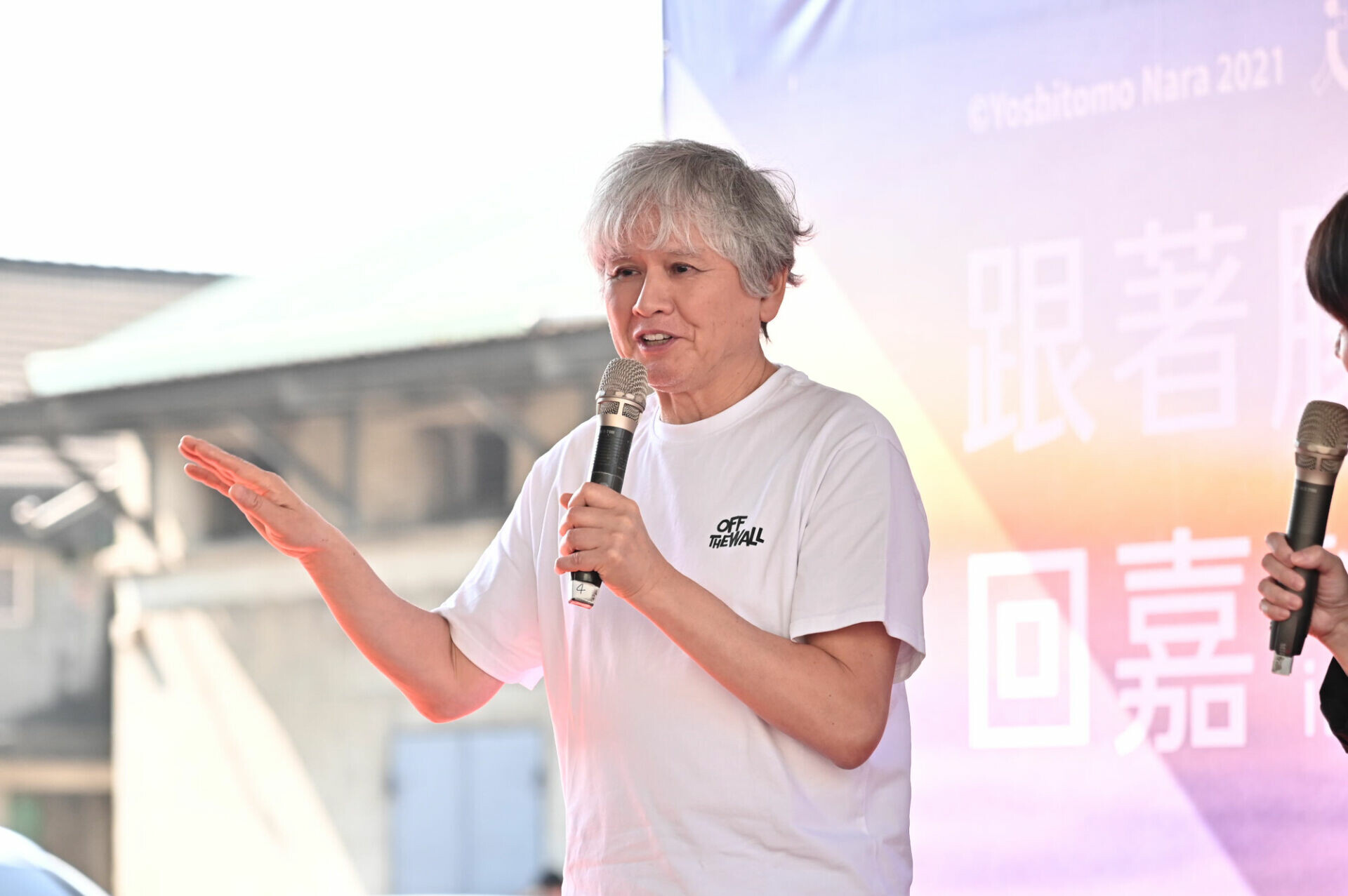 日本當代藝術家奈良美智在嘉義新港文化館的開幕現場致詞