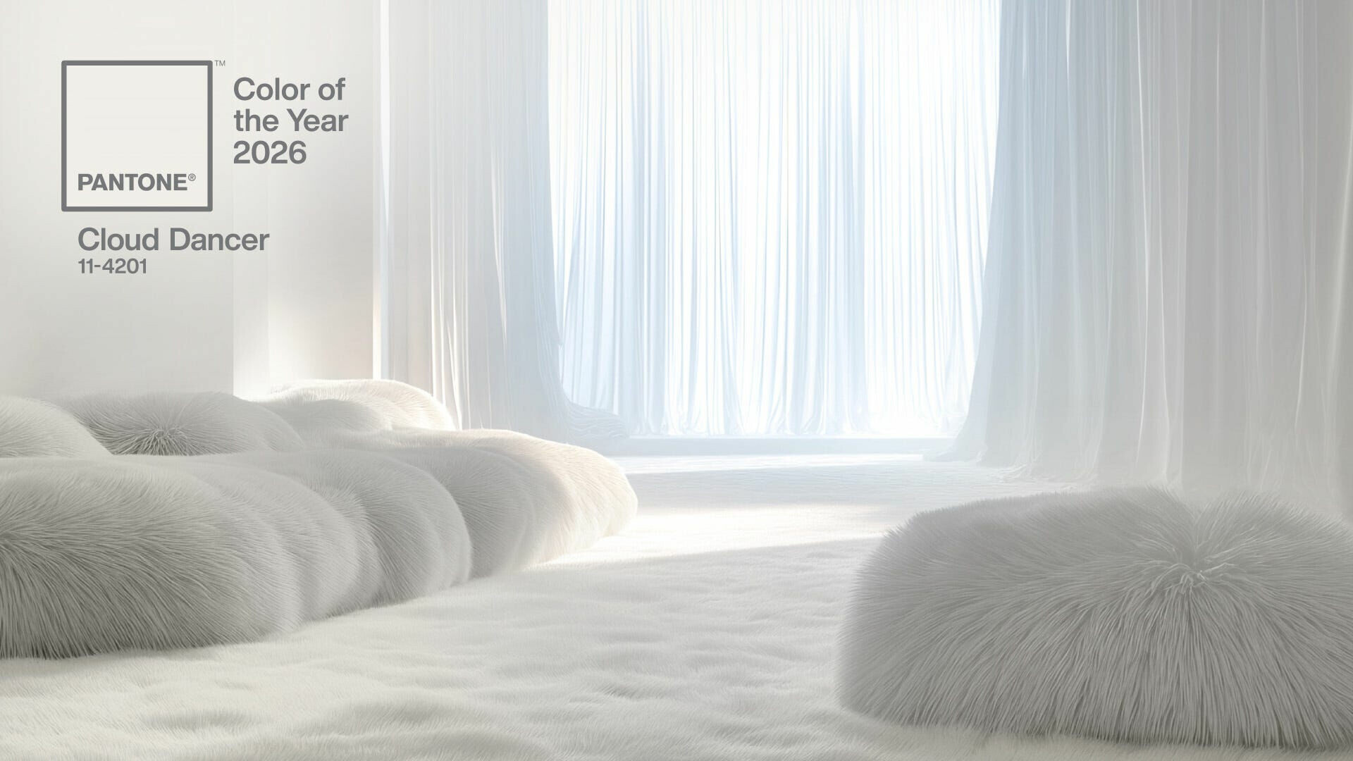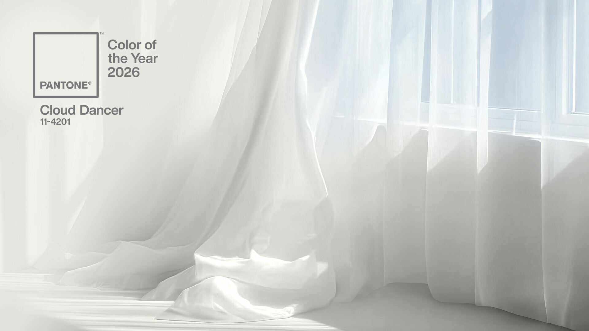 在資訊爆炸與速度為王的年代,我們不斷被提醒要前進、創造、回應、再前進。然而,人類心中最深層的渴望,往往不是喧鬧,而是結束喧鬧後的那口深呼吸。全球色彩權威 Pantone 彩通於 2025 年 12 月發佈全新年度色彩「雲上舞白 Cloud Dancer」,是彩通長達 27 年首次挑選白色系的色彩作為年度代表色,這也正是對這份渴望最溫柔的回應。它不是冷冽的空白,而是一種帶有體溫的白 —— 輕盈、柔軟、如同呼吸間的靜默,為疲憊的生活拉開一道縹緲空間。Pantone 色彩研究所指出「雲上舞白 Cloud Dancer」是一種「象徵內斂力量的白」,在混亂之中承載澄明,在快速之中延長思考,在繁雜的世界裡,提醒人們為心靈保留一方乾淨的境地。