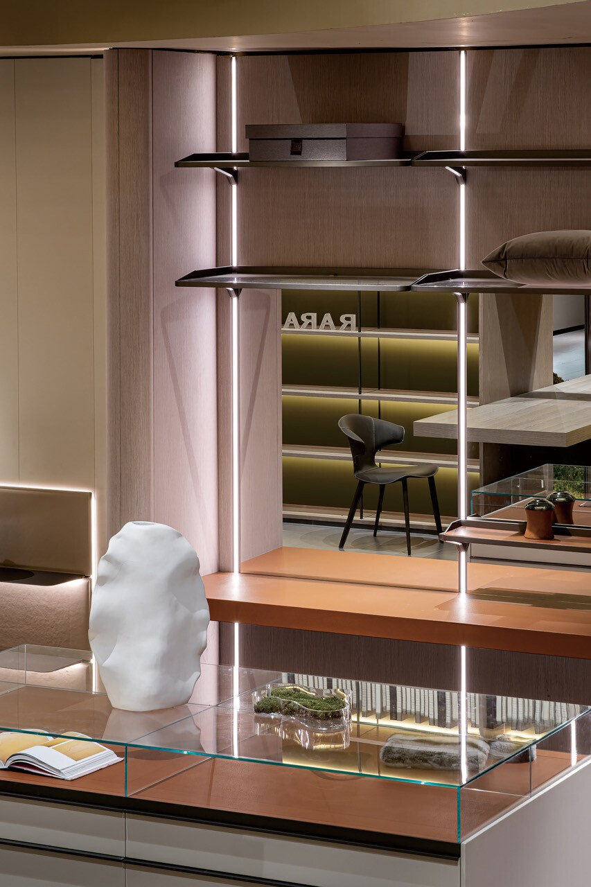 然而,真正能長久存在的品牌,從不只依賴形式,而是來自集體智慧與時間累積。RARA 在高級定製的定位中,將工藝、材質與設計邏輯整合為一套完整的語言。產品不再只是功能物件,而是承載品牌精神的媒介。CUN 寸 DESIGN 所做的,正是在有限的展廳尺度中,嘗試突破物理與想像的邊界。當建築、產品與使用者產生共鳴,空間便不再只是展示,而是一種可被記憶的經驗。方與圓的交集在此成為起點,而非終點,設計也因此持續延伸。