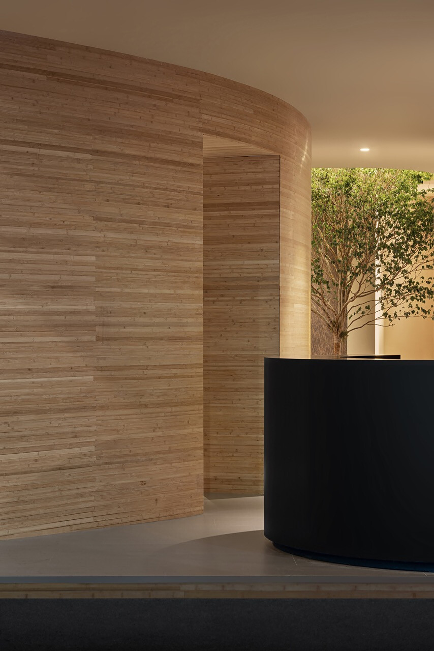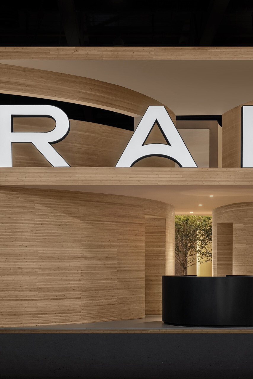 起初,當人進入空間,真正被感知的並非牆體或尺度,而是移動的過程。動線,是建築與人之間最直接的對話方式。RARA 展廳並未追求一覽無遺的開放,而是透過方與圓的節奏排列,創造出層層遞進的行走經驗。在行進之間,視線被引導、被遮擋、再被釋放,空間因此產生時間感。這種「滯後」的體驗,使人不自覺放慢腳步,開始注意材質的轉換、光影的游移,以及產品與建築之間微妙的比例關係。秩序不再是限制,而是一種讓自由得以發生的前提。更重要的是,這座展廳同時回應了未來工作與展示型態的轉變。它既是品牌形象的展示場域,也是可被使用的辦公空間。界線的模糊,使展示不再只是觀看,而是被實際佔用與體驗。後疫情時代所強調的彈性、無線化與人性化,在此不以口號呈現,而是被具體地轉化為空間行為。
