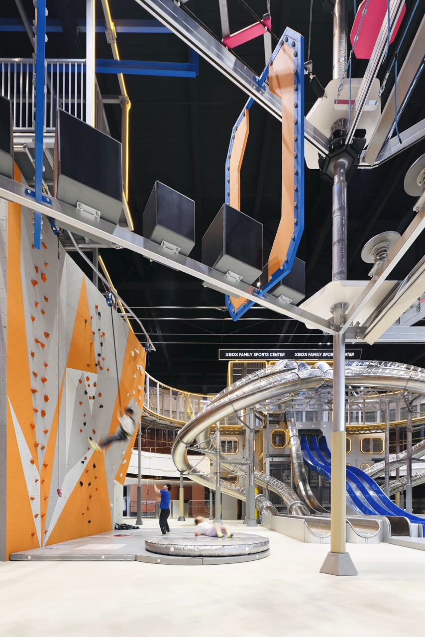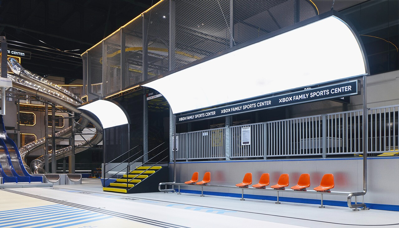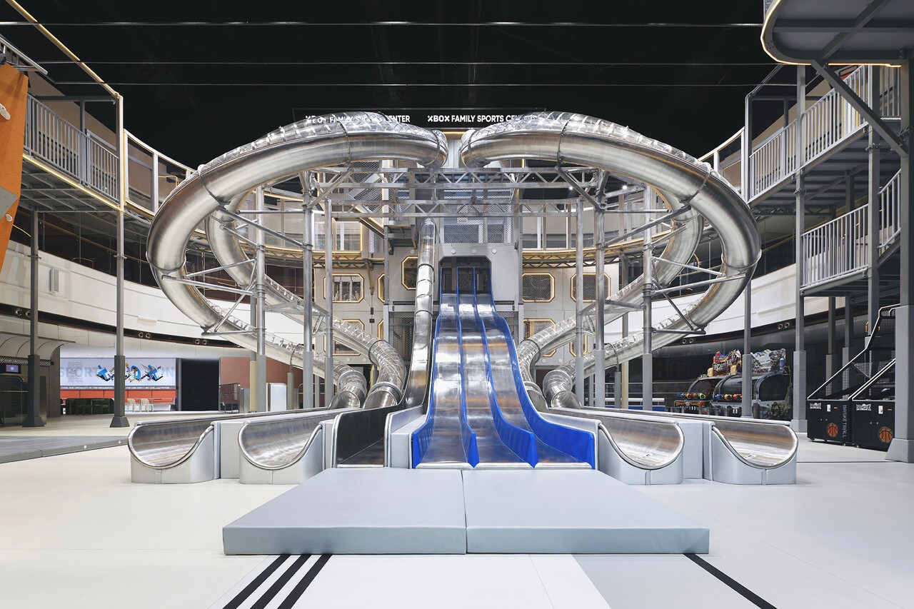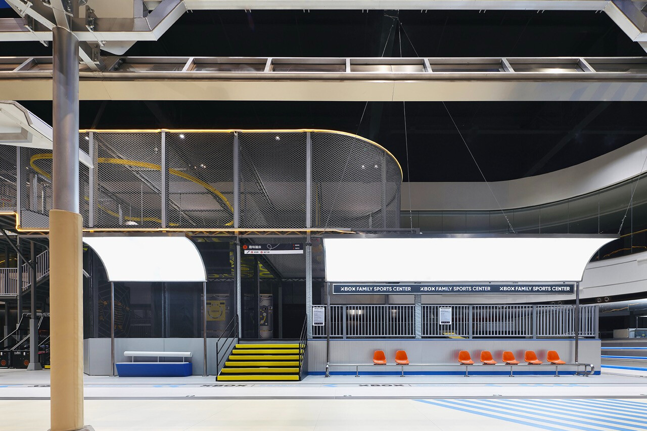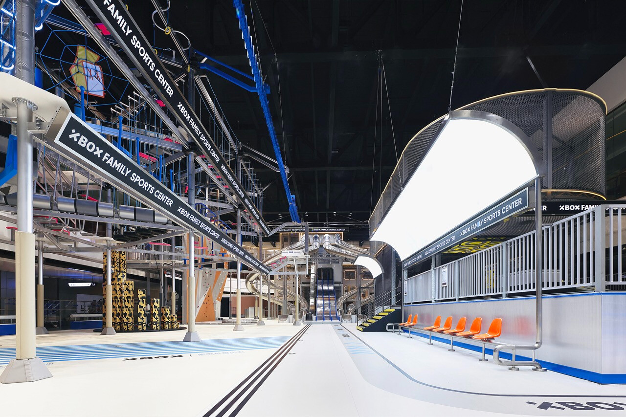 上海 XBOX 家庭運動中心以未來感工業語彙為基底,結合機能運動美學與體驗經濟思維,打造一座跨越年齡與世代的室內運動場域。空間不僅回應 Z 世代對速度與刺激的渴望,更透過社交與共享場景,重新定義運動、家庭與生活之間的關係