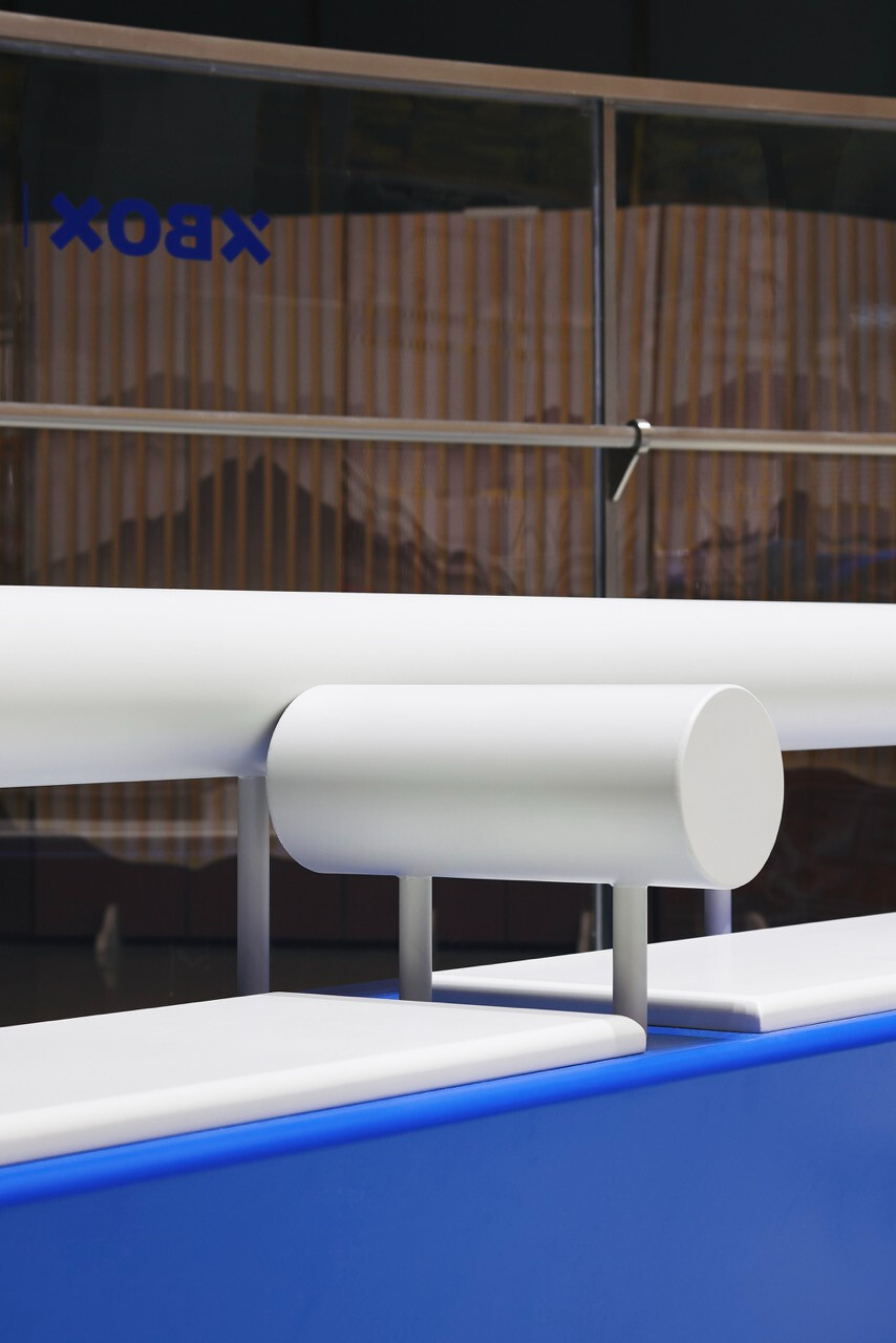 再者,宇合光年所提出的「機能運動美學」,並非僅止於風格,而是一種將運動邏輯轉化為空間敘事的方法。曲線、斜線與弧形元素在場域中反覆出現,引導視線,也牽動身體的移動方向,使人在空間中的行走、攀爬與滑行,都形成連續而不中斷的感知經驗。這種流動性,使整個場域宛如一場持續進行中的運動。工業風格原生的效率感,與運動所需的節奏感在此達成微妙平衡,讓潮流不再只是表層裝飾,而成為功能與形式相互支撐的結果。